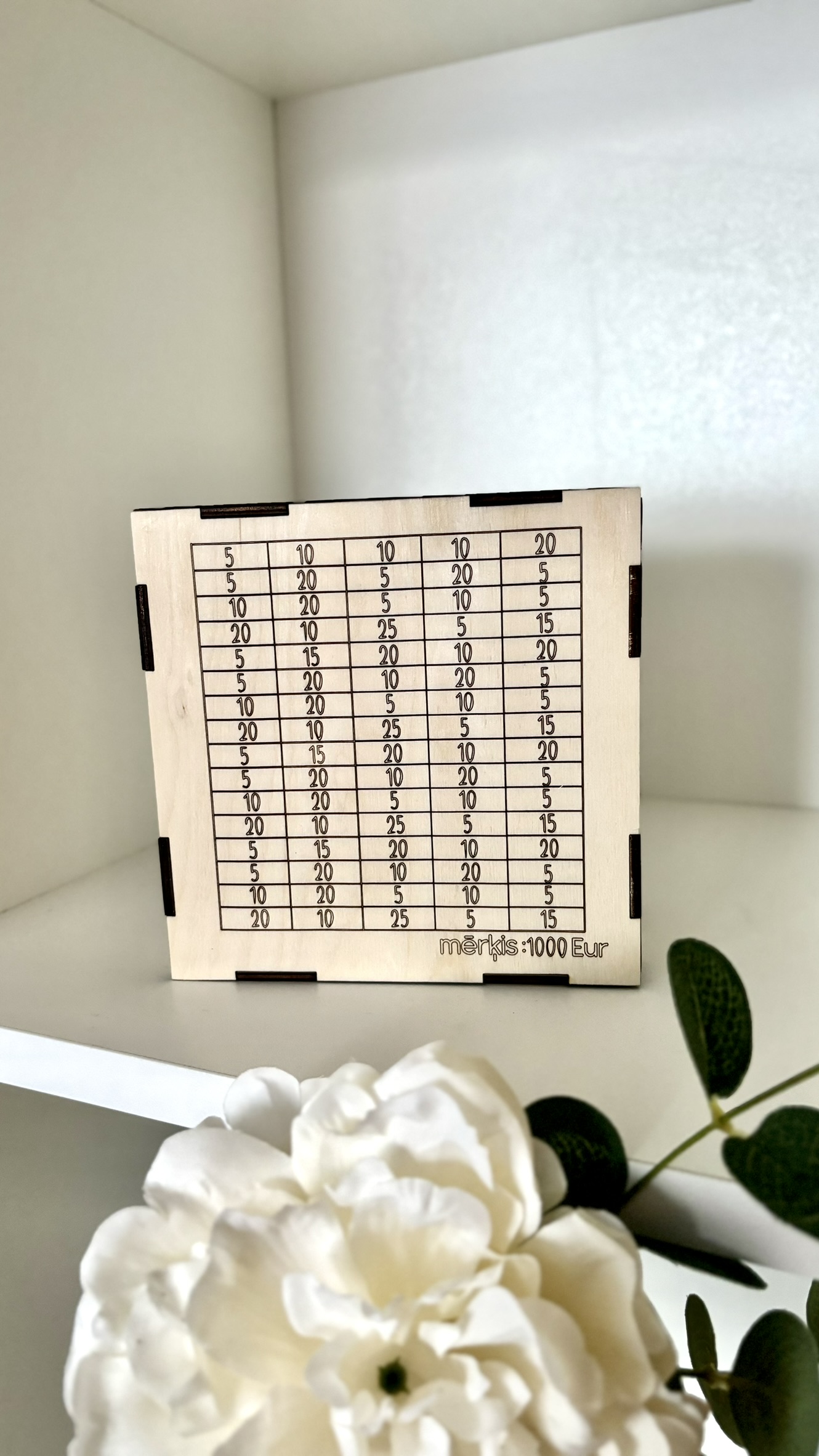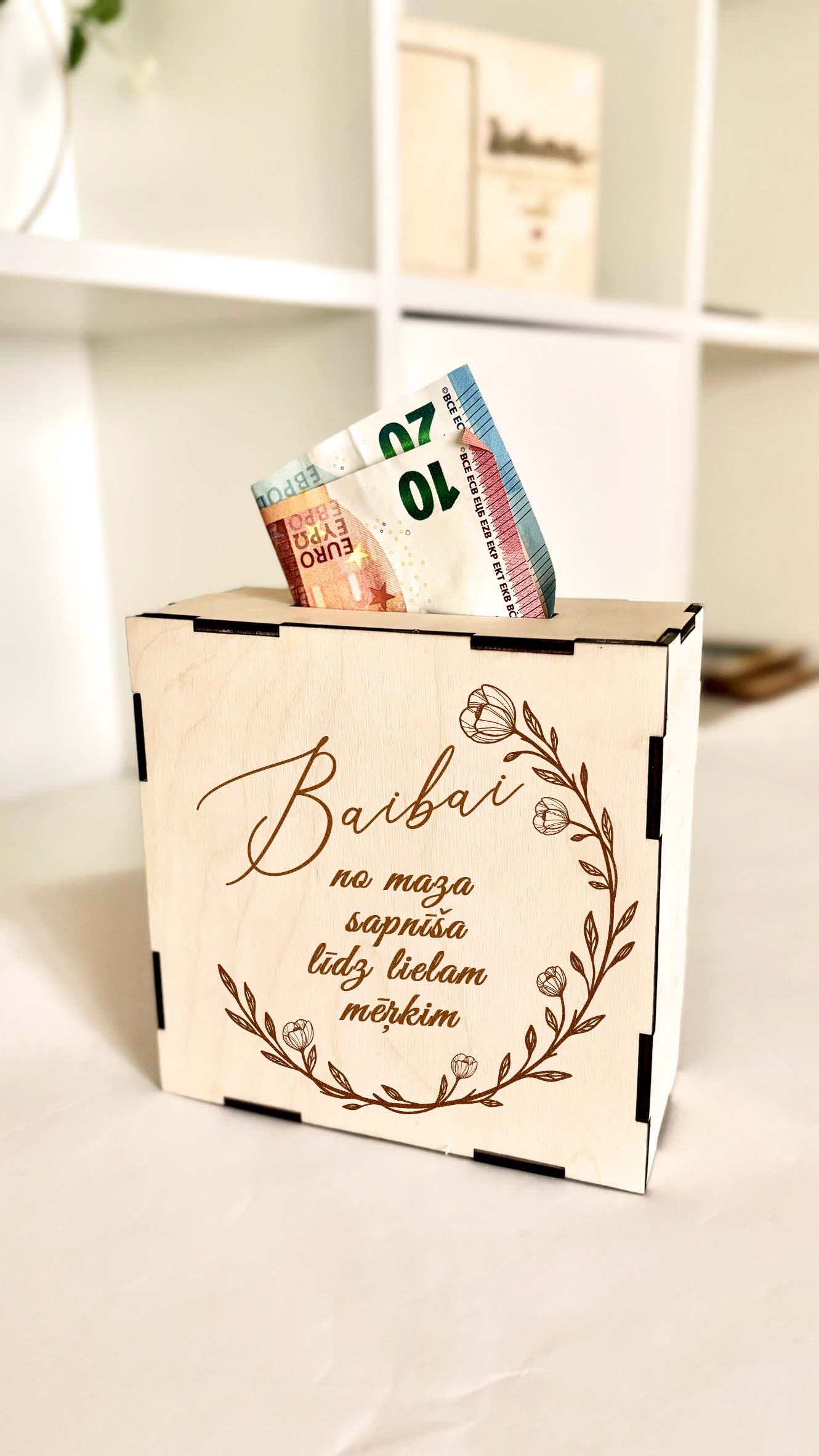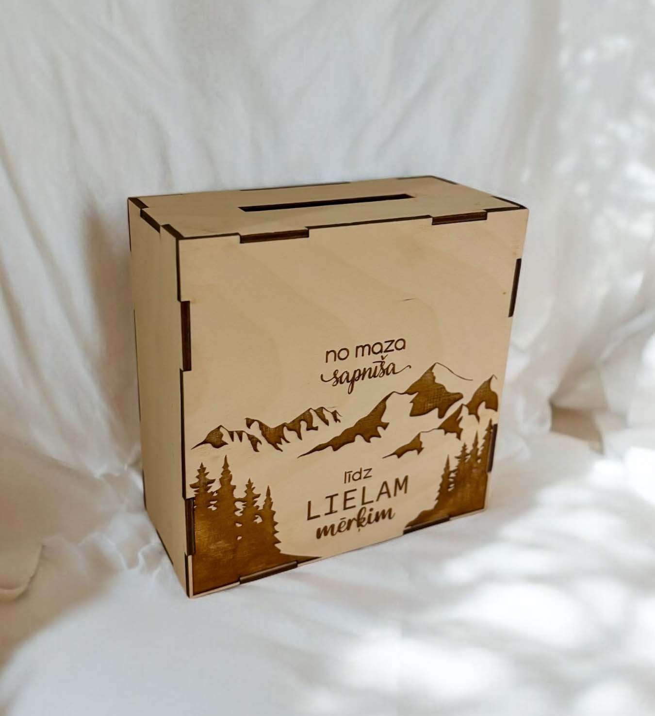 Personalizēta koka krājkase ar mērķi – ievietojot naudiņu izsvītro attiecīgo naudas lauciņu & kad visi naudas lodziņi būs nosvītroti, MĒRĶIS BŪS SASNIEGTS. :))